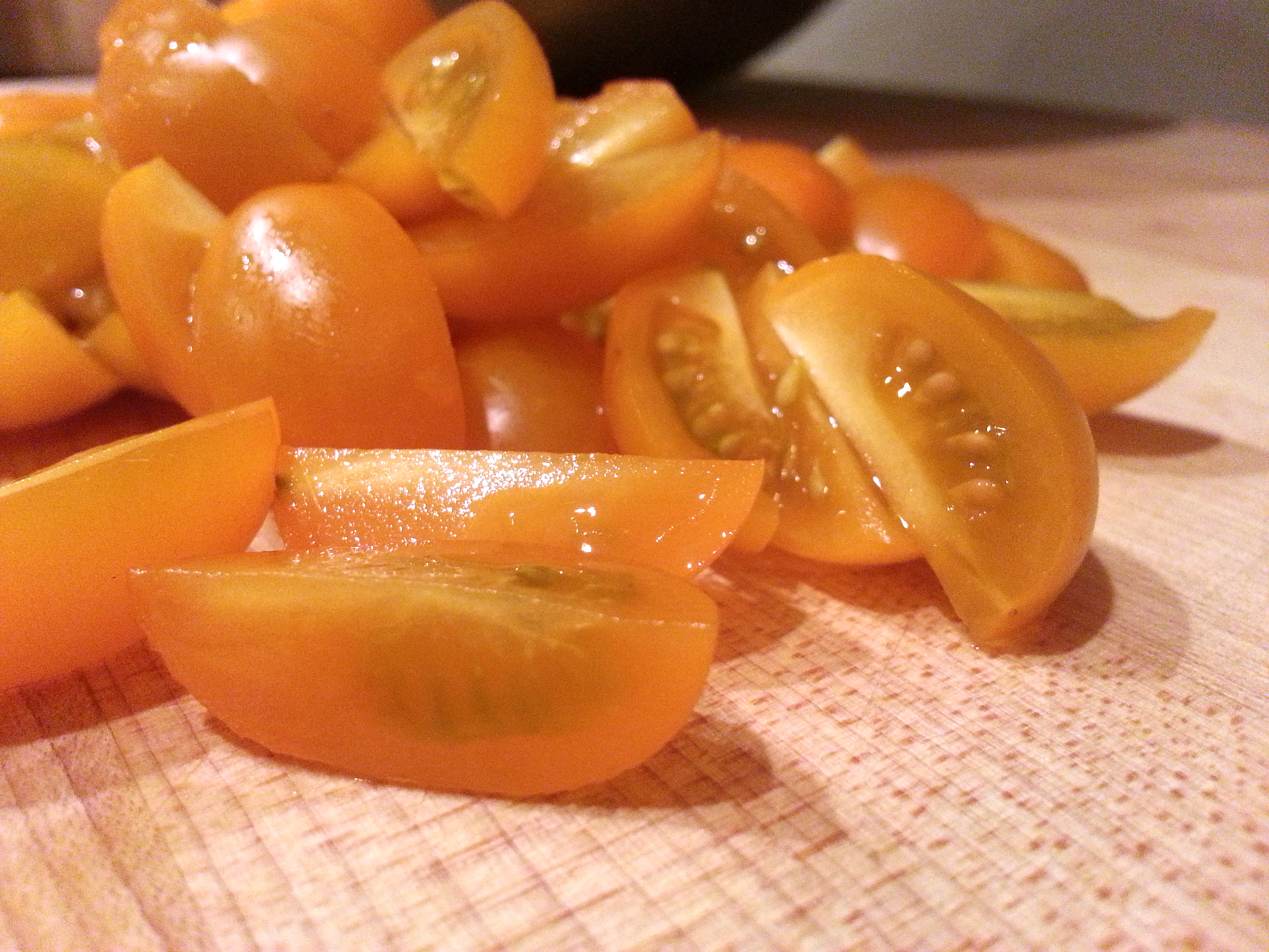 1/2 pint of organic golden grape tomatoes, quartered